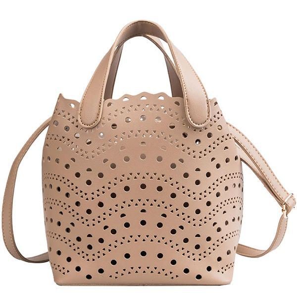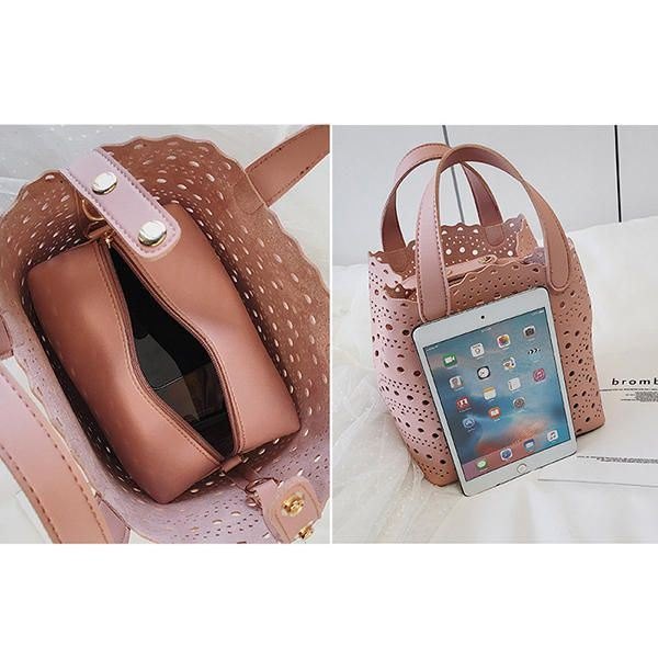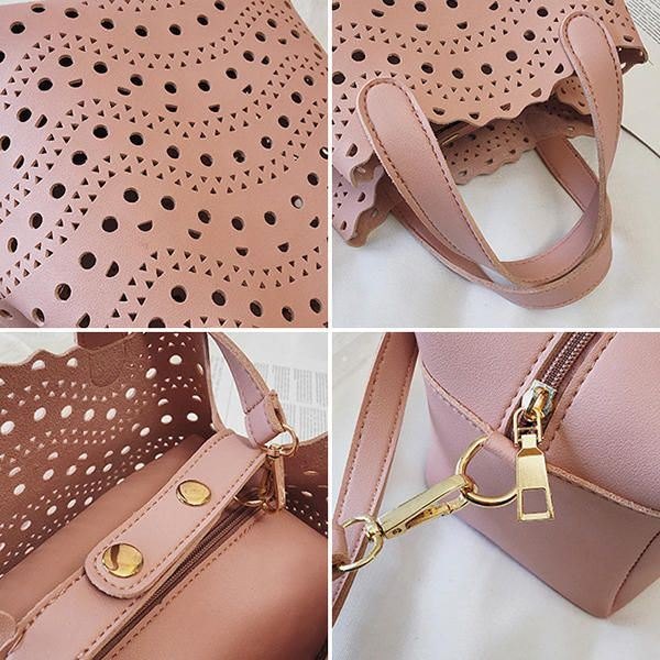 2 Stk Dame Hollow Out Pu Skinn Bøtteveske