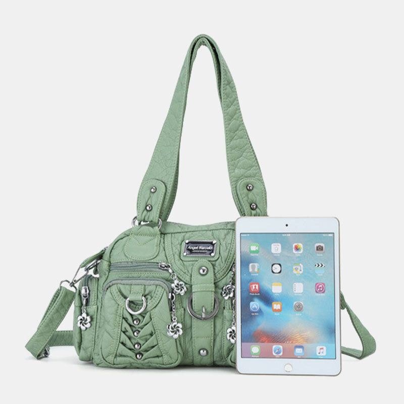 Angel Kiss Dame Pu Lær Multi-bær Ensfarget Mote Uformell Skulderveske Crossbody Bag Håndveske