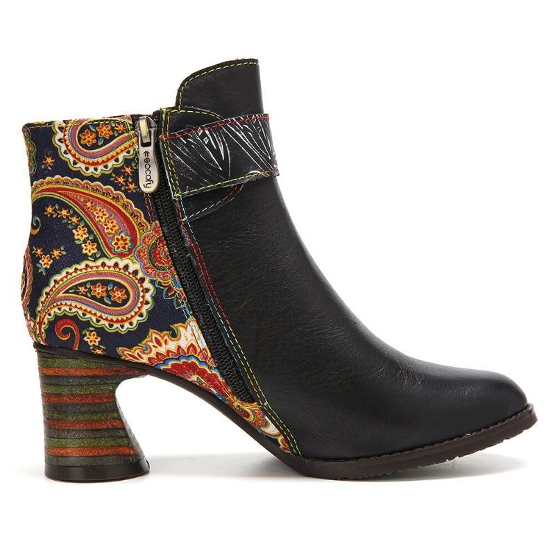 Ankelspenne For Dame Dekor Retro Blomstertrykt Skjøteskinn Behagelige Ankelstøvletter Med Kraftige Hæler
