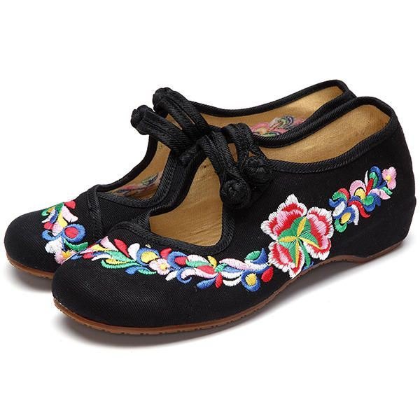 Blomsterbrodert Slip On Retro Flat Loafers For Kvinner