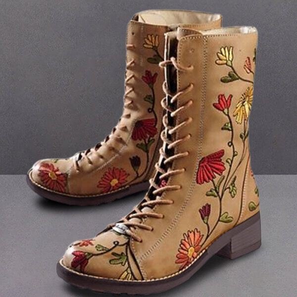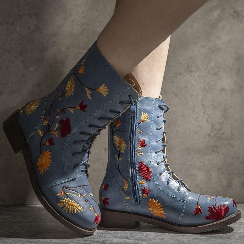 Blomsterbrodert Tykk Hæl Ankelstøvler For Kvinner