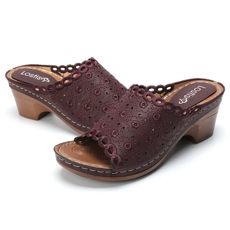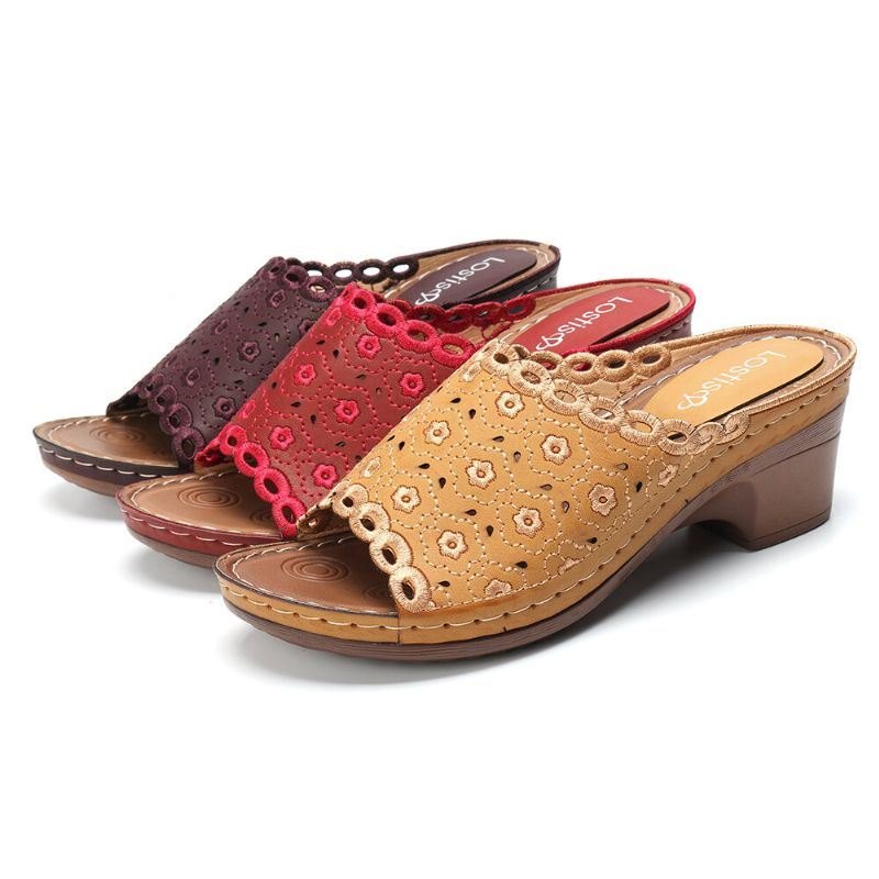 Blomsterbroderte Chunky Hæl Peep Toe Sandaler For Kvinner