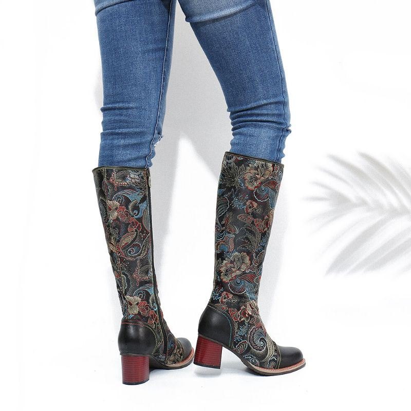 Blomstertrykt Kuskinn For Kvinner Varme Og Sklisikre Casaul Støvler Med Midt-legg