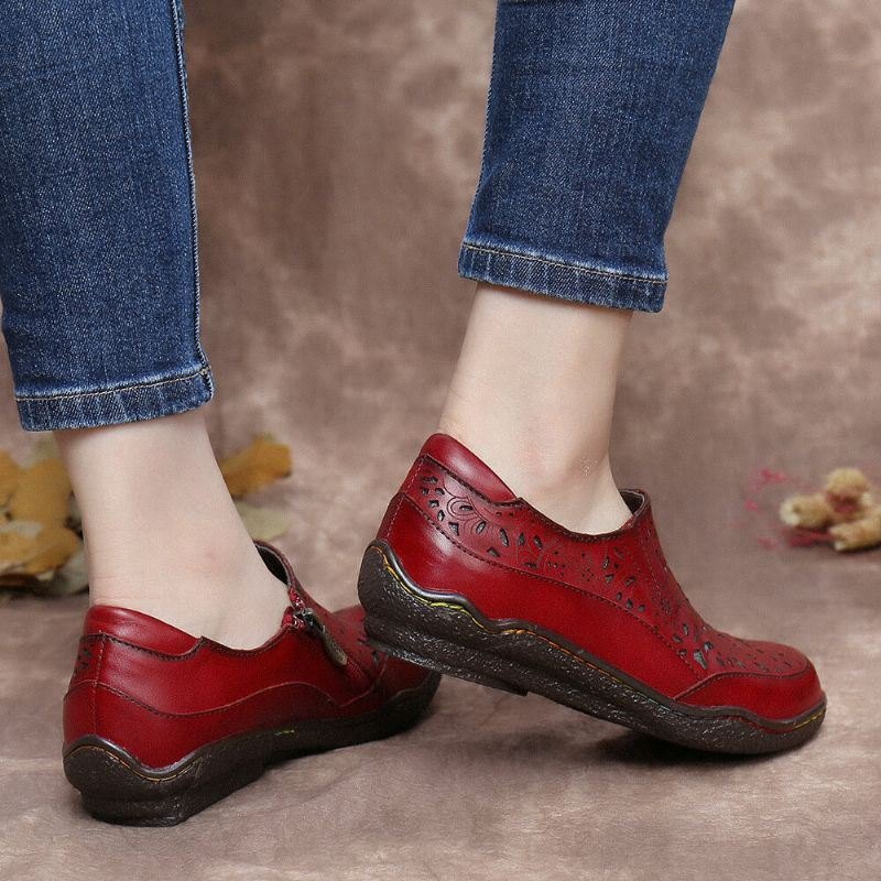 Blomsterutskjæringer I Skinn For Dame Slip On Loafers Glidesko På Siden
