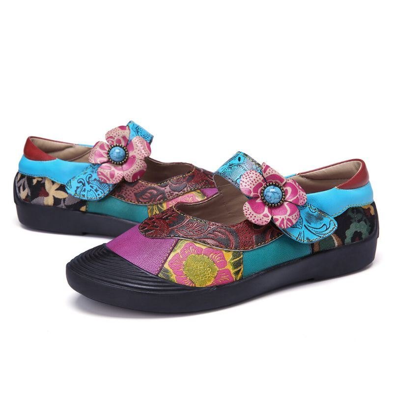 Bohemsk Skinnskjøting For Dame Blomstertåhette Krokløkke Ankelstropp Flate Sko