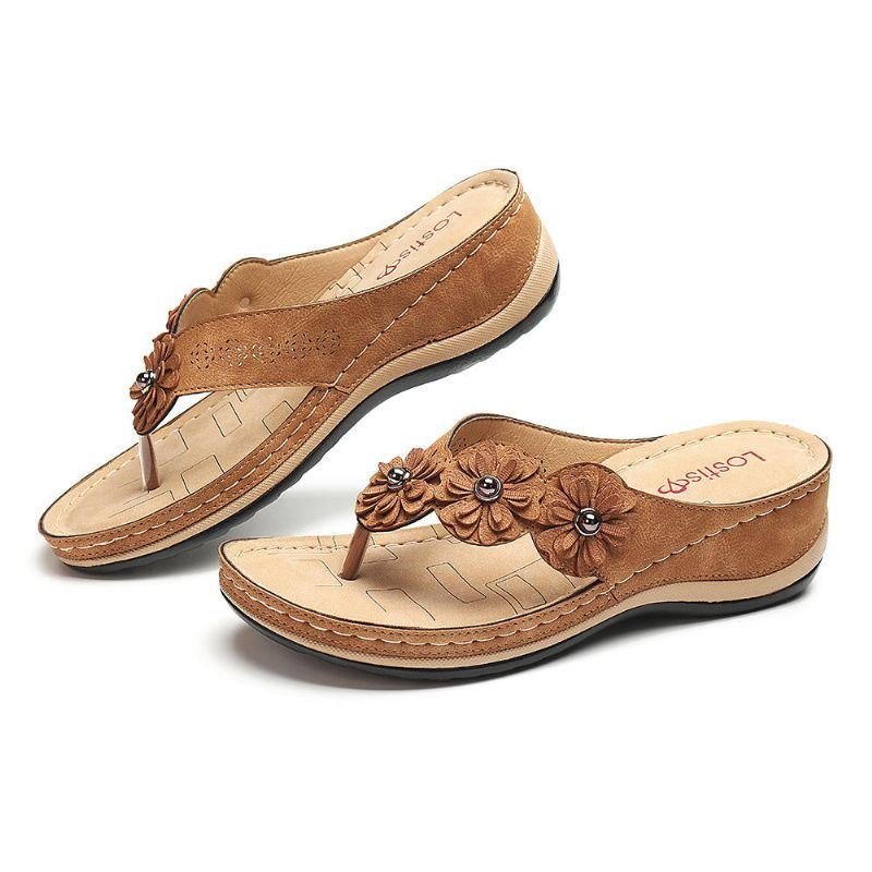 Comfy Flip Flop Flowers Wedge Sandaler For Kvinner