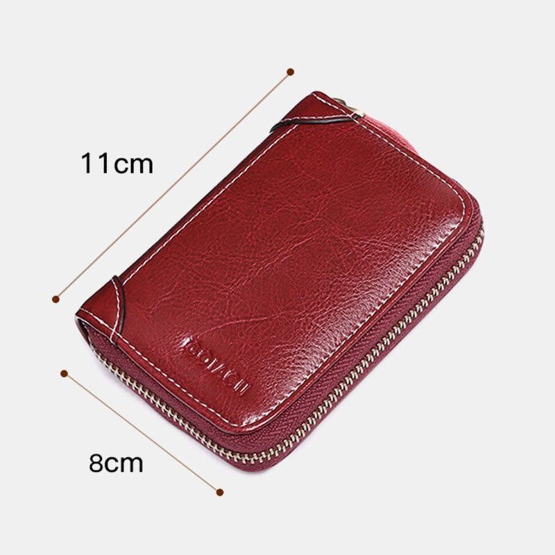 Dame 12 Kortspor I Ekte Skinn Med Kort Glidelås Myntlommebok