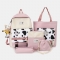 Dame 5 Stk Canvas Preppy Cow Pattern Multifunksjon Combination Bag Ryggsekk Tote Crossbody Bag Clutch Lommebok
