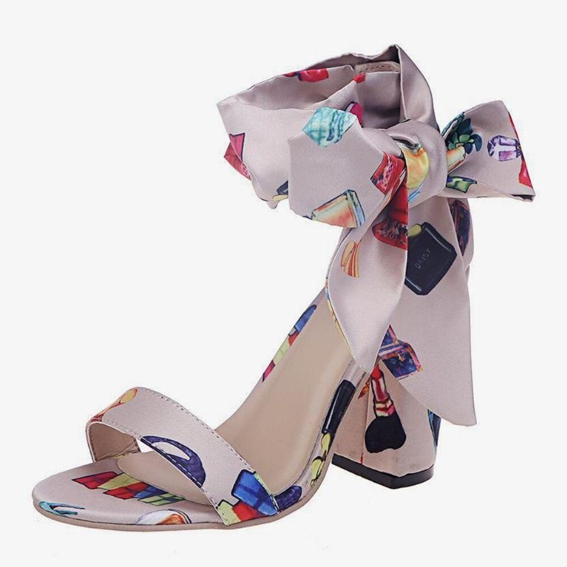 Dame Åpnet Tå Snøre Sko Med Tykke Hæler