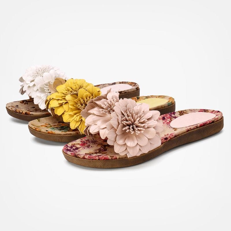 Dame Blomster Dekor Åpnet Toe Comfy Slide Sandaler