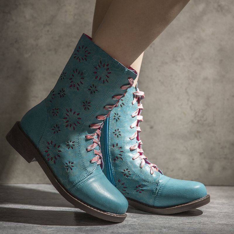 Dame Blomster Hult Mønster Blonder Med Tykk Hæl Ankel Korte Støvletter