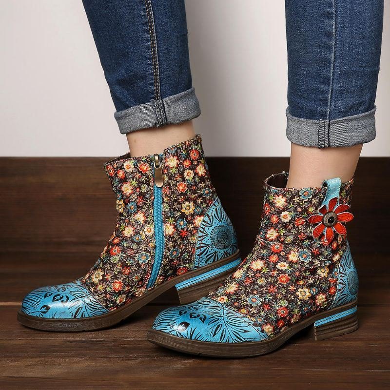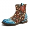 Dame Blomster Skjøting Ekte Skinn Komfortable Ankelstøvletter