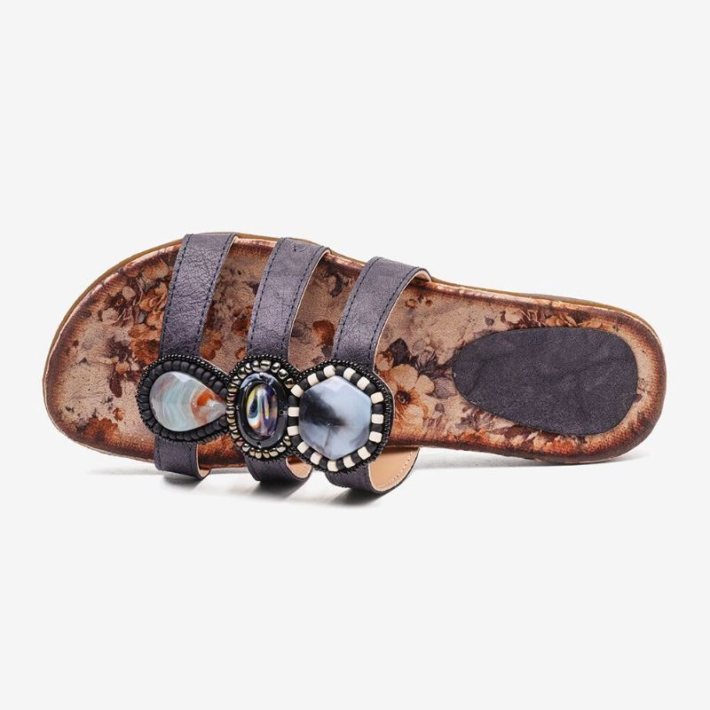 Dame Bohemian Bead Decoration Clip Toe Blomstermønster Myk Såle Uformelt Sommerstrand Flate Sandaler