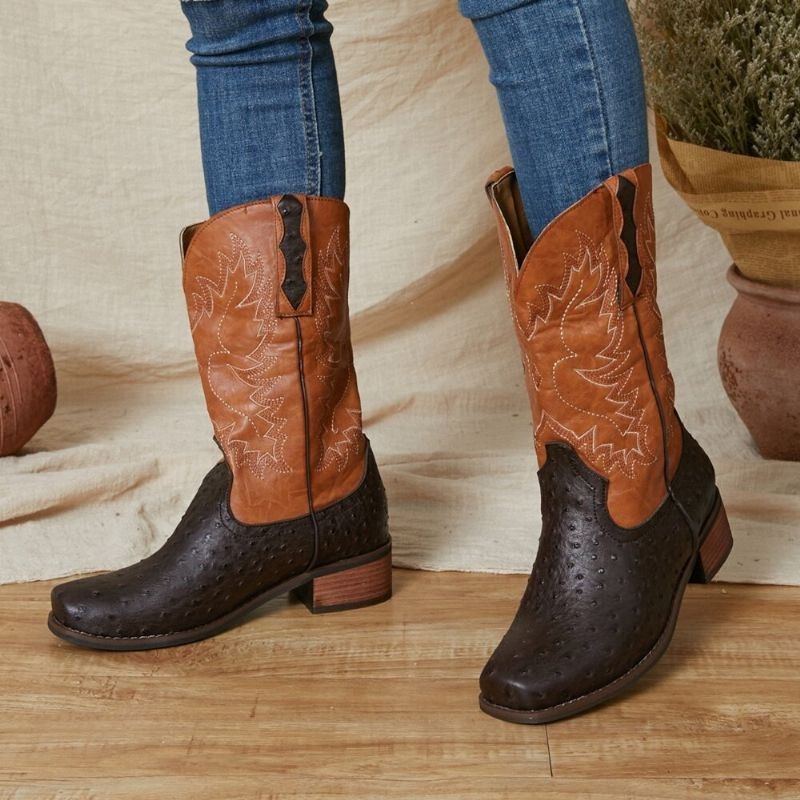 Dame Broderte Skjøtebeskyttende Cowboystøvler