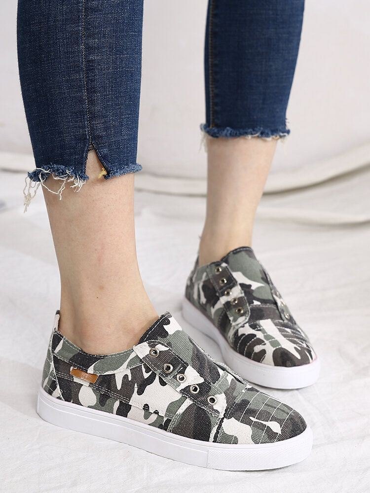 Dame Camouflage Canvas Wide Fit Comfy Wearable Casual Flats