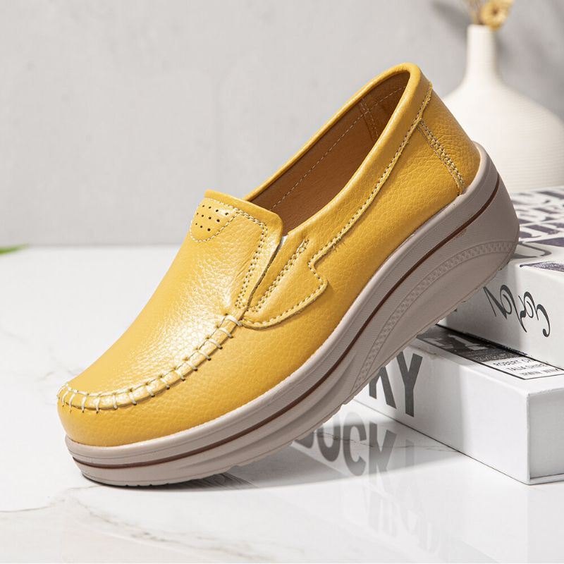 Dame Casual Ensfarget Håndsøm Plattformer Komfortable Loafers Sko