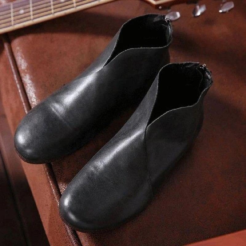 Dame Casual Retro Ensfarget Rund Toe Komfortable Ankelstøvletter