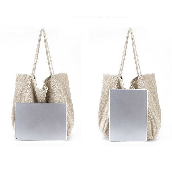 Dame Corduroy Vintage Stor Kapasitet Shopping Bag Skulderveske Håndveske
