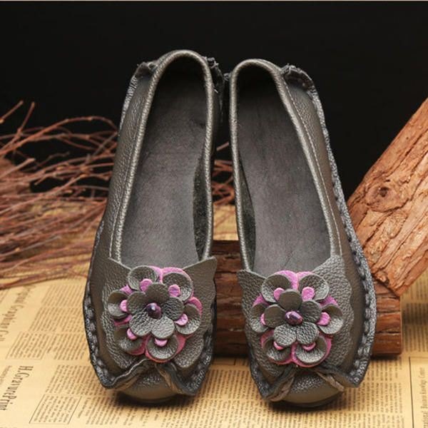 Dame Ekte Skinn Håndlaget Myk Såle Uformell Slip On Flats Loafers