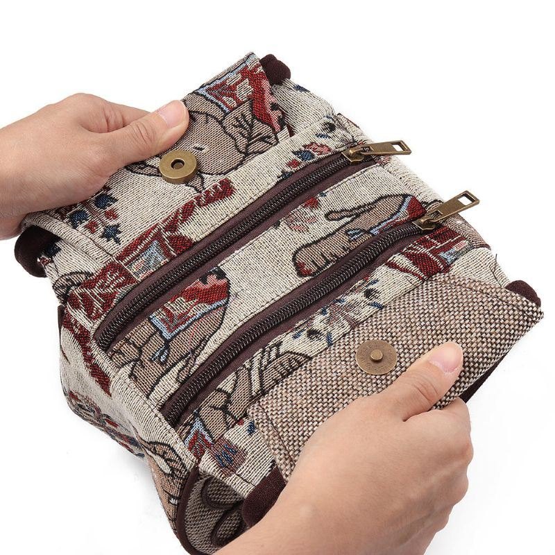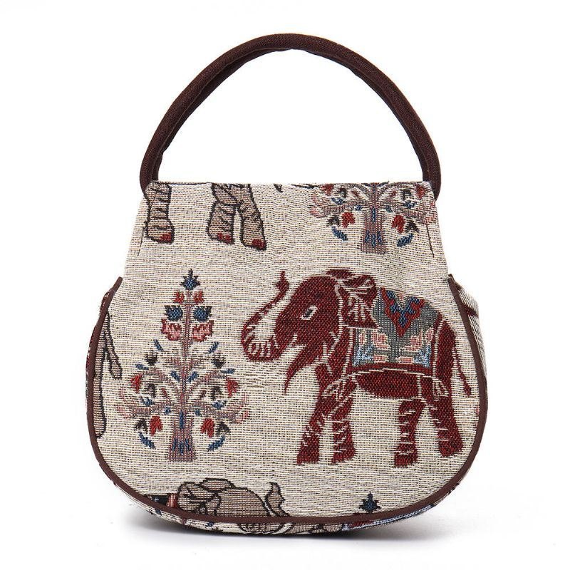 Dame Etnisk Elefantmønster I Lin Med Dobbel Glidelås