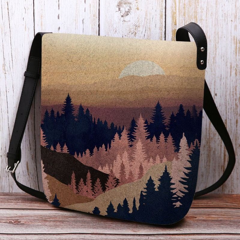 Dame Filt Dame Mountain Treetop Print Mønster Multi-carry Personlighet Skulderveske Crossbody Bag