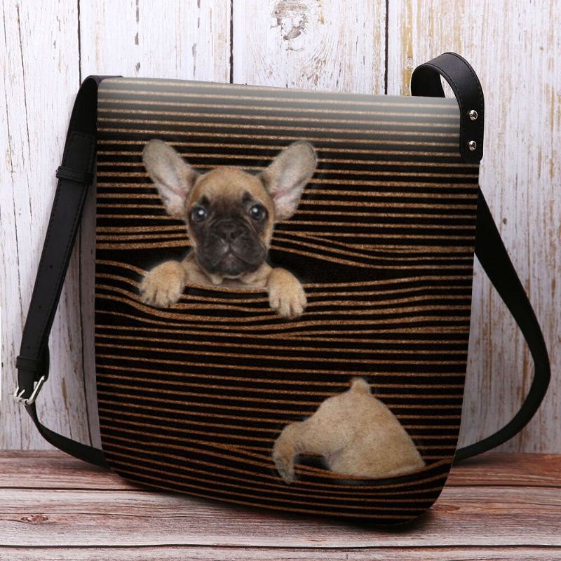 Dame Filt Uformell Stripe Søt 3d Hundeutskriftsmønster Crossbody Bag Skulderveske