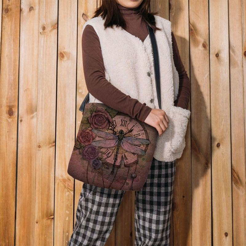 Dame Filt Uformell Vintage 3d Dragonfly Blomstertrykkmønster Crossbody Bag Skulderveske