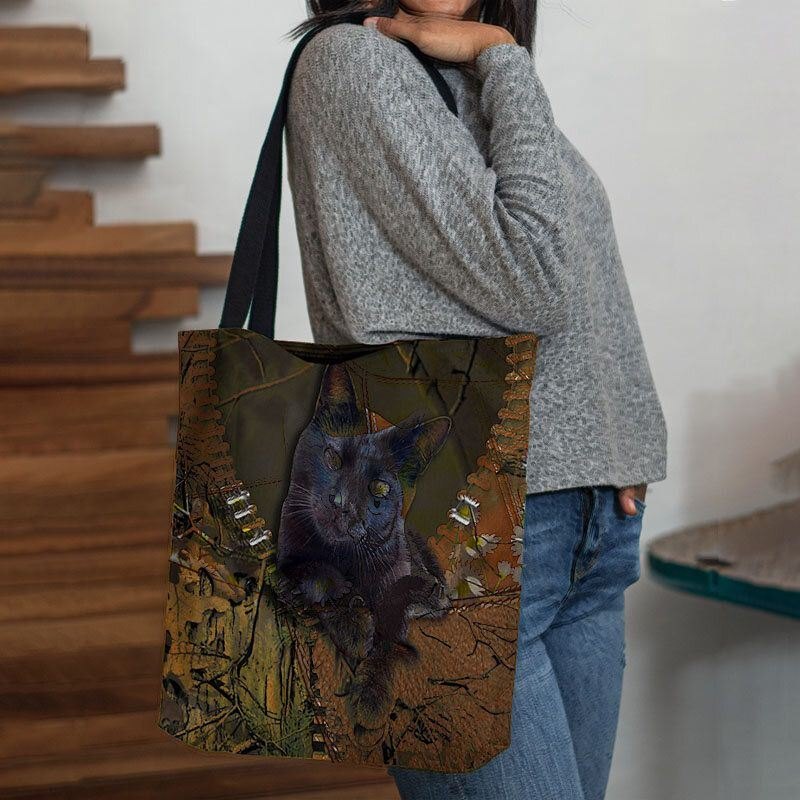 Dame Føltes Søt 3d Tredimensjonal Tegneserie Svart Katt Grenmønster Skulderveske Håndveske Tote