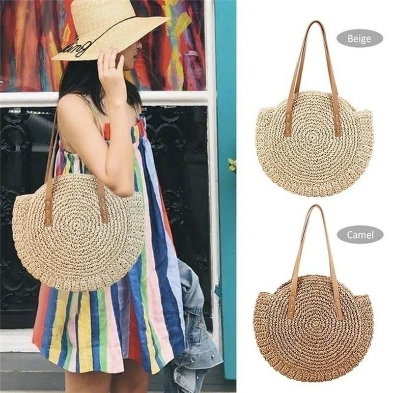 Dame Fritid Rund Stråveske Vevd Strandveske Skulderveske