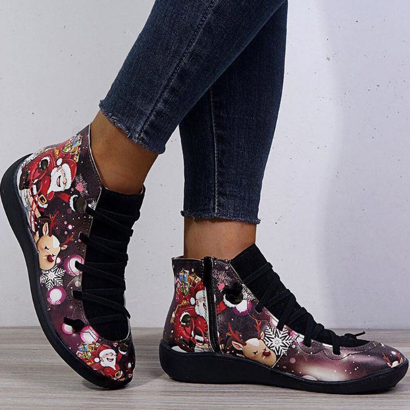 Dame Funny Christmas Tegneserie Mønster Utskrift Lace Up Flat Short Boots