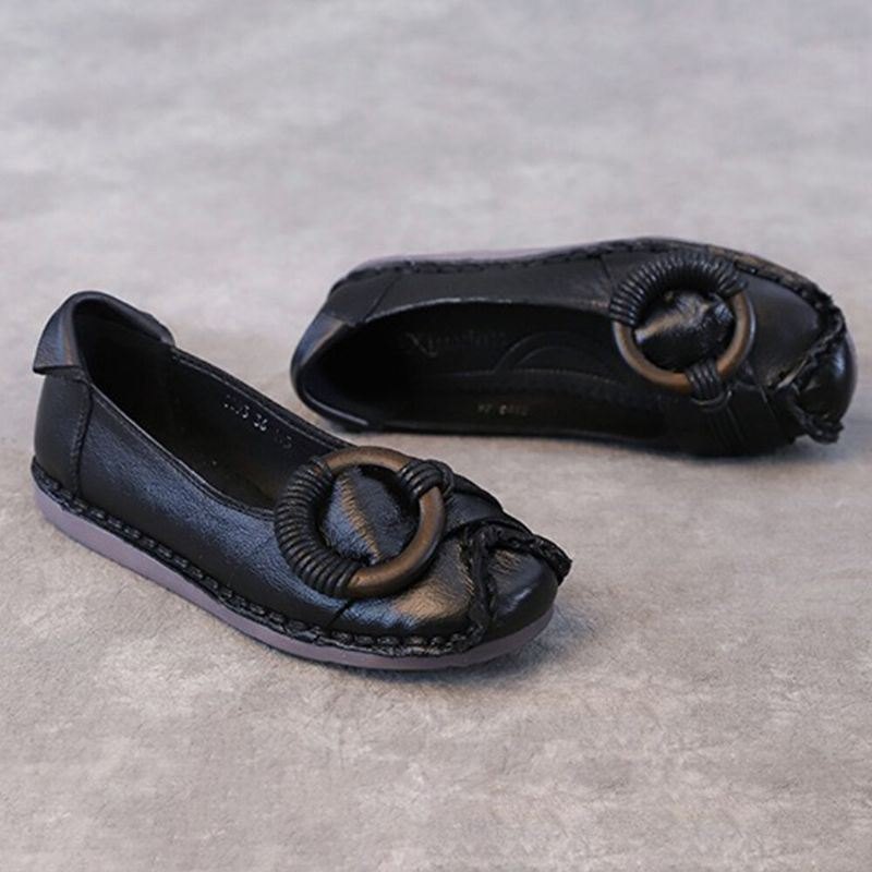 Dame Håndlaget Stricing Decor Behagelig Myk Såle Uformelle Loafers I Skinn