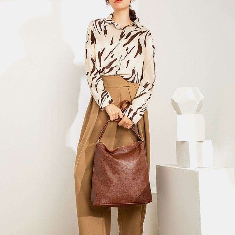 Dame Imitert Skinn Ensfarge Stor Kapasitet Myk Bøtteveske Crossbody-veske Skulderveske