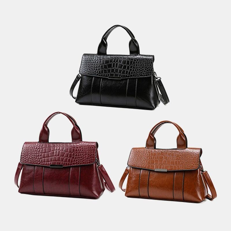 Dame Kunstskinn Retro Vintage Mote Multi-bære Håndveske Tote Crossbody Bag