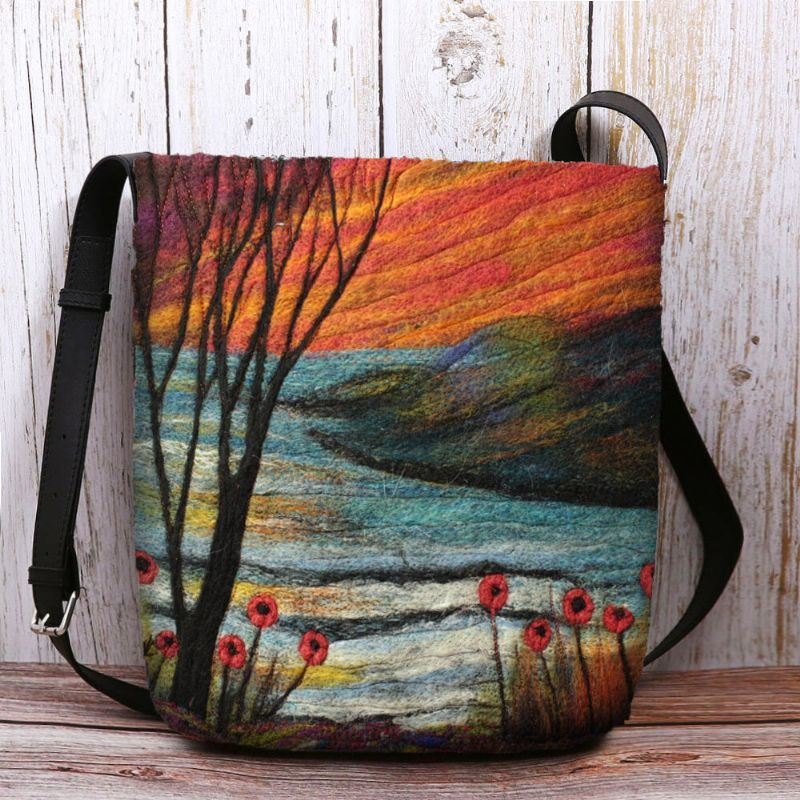 Dame Lammehår Høst Naturscene Fargerik Gjør-det-selv Skulderveske Crossbody-veske