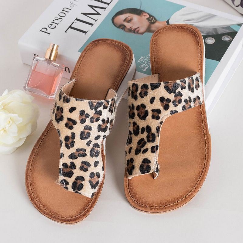 Dame Large Size Comfy Myk Leopard Clip Toe Flat Sandaler
