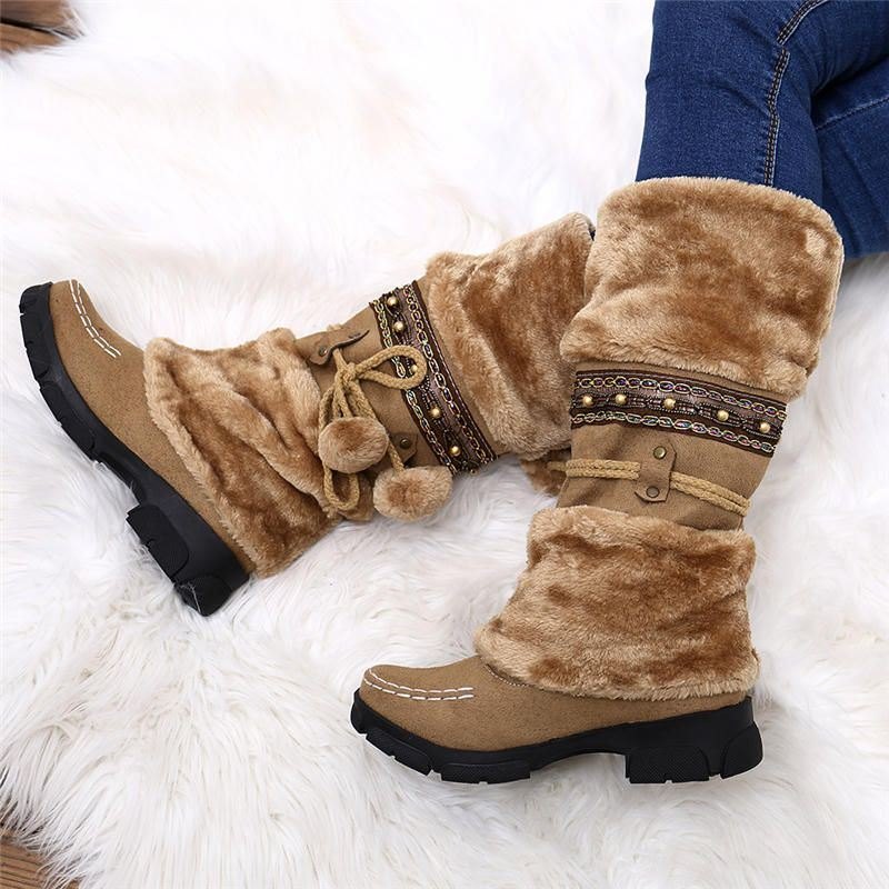 Dame Large Size Fluffy Hold Warm Vintersnøstøvler