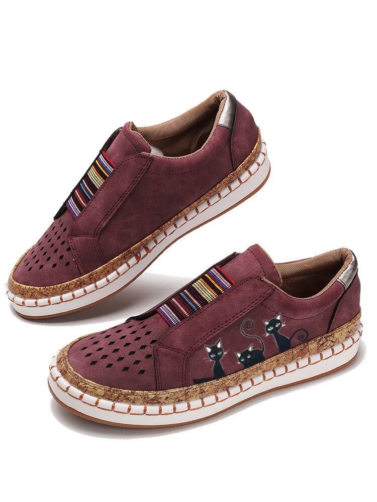 Dame Large Størrelse Cat Printing Hollow Out Elastisk Bånd Casual Flats