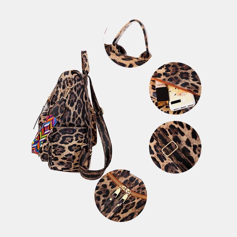 Dame Leopard I Imitert Skinn Og Blomstermønster Mote Uformell Ryggsekk