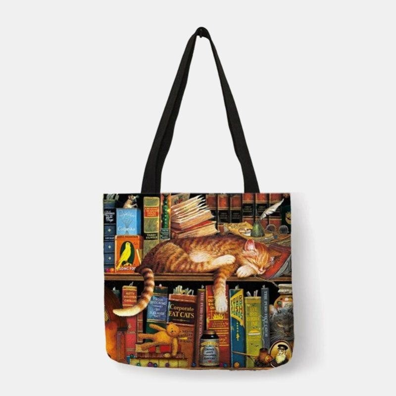 Dame Lerret Søt Tegneserie Oljemaleri Katter Utskrift Vanntett Handleveske Skulderveske Håndveske