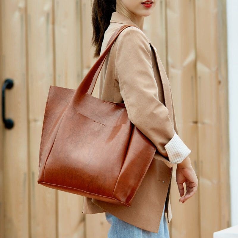 Dame Magnetisk Knapplukking Med Stor Kapasitet Vintage Lett Pustende Myk Håndveske Skulderveske