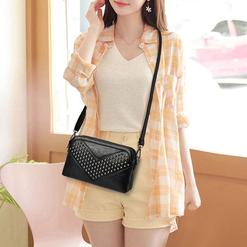 Dame Multi-lomme Frontnagle Dekorer Crossbody Bag Stor Kapasitet Avtagbar Skulderstropp Skulderveske Håndveske