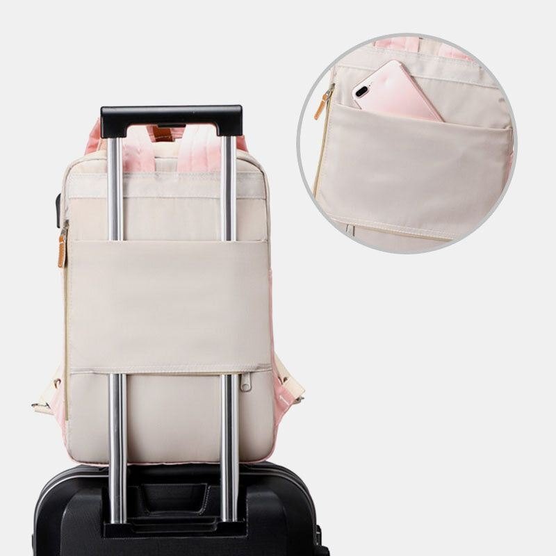 Dame Nylon Usb Lading Multi-lomme Ryggsekk Med Stor Kapasitet Uformell Enkel Vanntett 14 Tommers Bærbar Veske