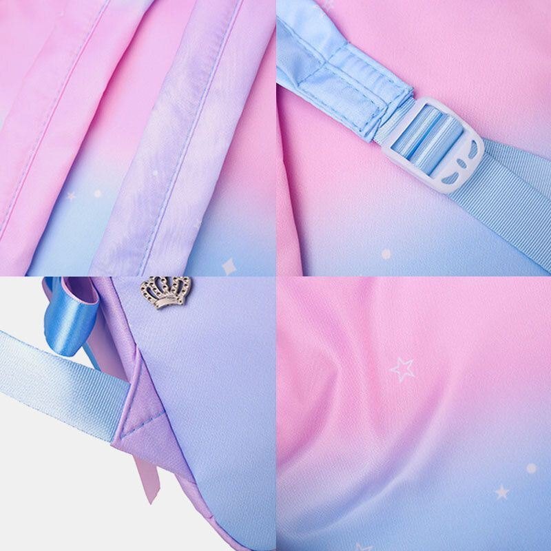Dame Oxford Color Gradient Øretelefon Hull Bowknot Casual Studeng Bag Ryggsekk