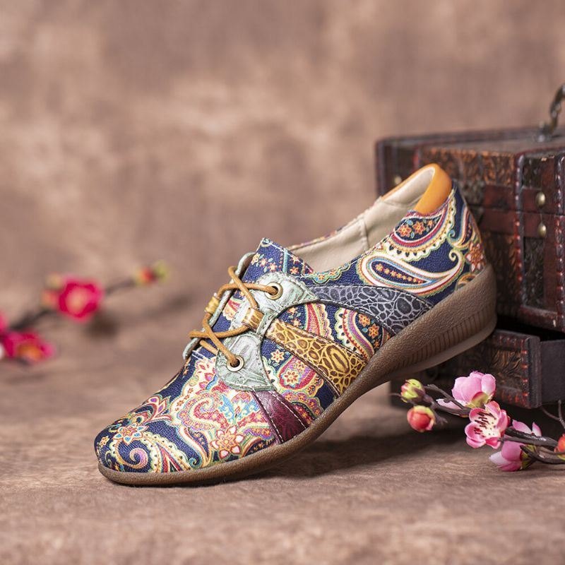 Dame Paisley Retor Blomsterskjøting Folkways-stil Rund Tå Snøre Flate Sko