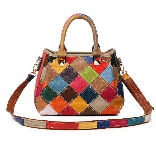 Dame Patchwork Kuskinn Fargerik Handbag Tote Handbag Crossbody Bag