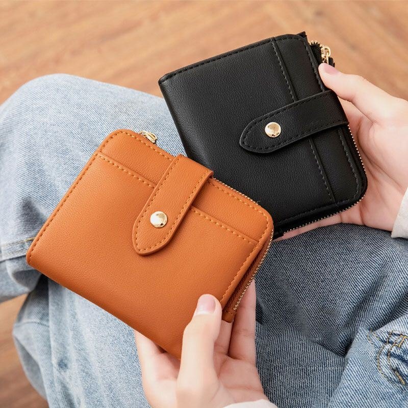 Dame Pu Leather Bifold Hasp Multi-kortspor Retro Kortkortholder Clutchlommebøker Med Håndleddsstropp