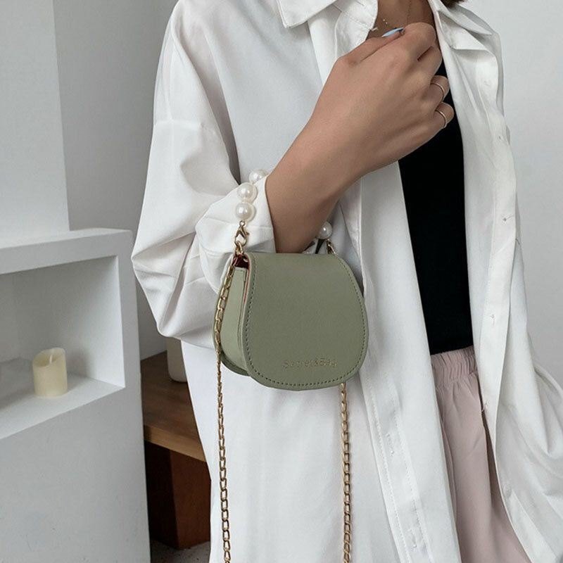 Dame Pu Leather Pearl Chain Håndveske Skulderveske Crossbody-vesker