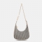 Dame Pu Leather Pearl Decor Chain Håndveske Pustende Kumønster Halvmåne Skulderveske Underarmsveske