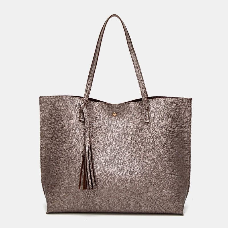Dame Pu-skinn Litchi-mønster Stor Kapasitet Uformell Dusk Solid Tote Skulderveske Håndveske