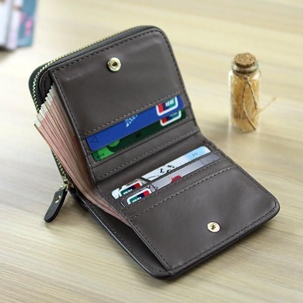 Dame Quilted Glidelås Kort Lommebok Jenter Søt Mini Veske